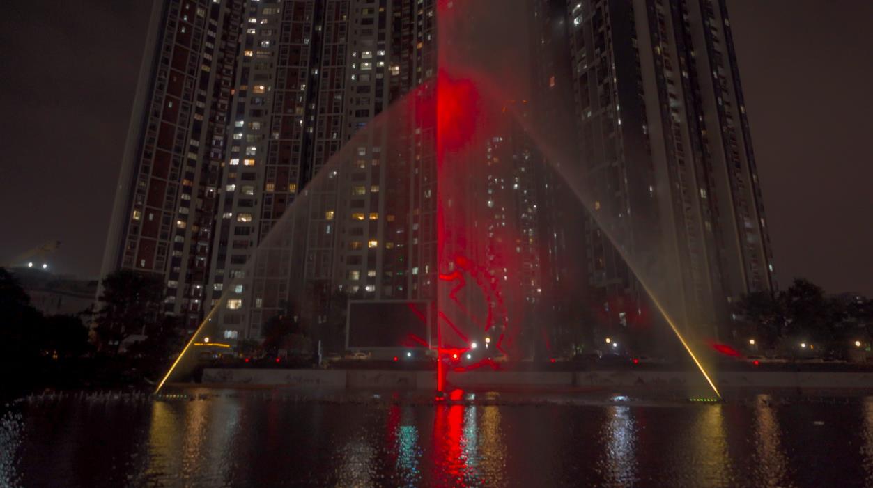 水舞秀噴泉設計共有7種水型和1個高噴造型,寓意中國共產(chǎn)黨的生日7月1日。7種水型設計分別寓意為:勇立潮頭、一往無前、凝心聚力、生生不息、展翅飛翔、龍飛鳳舞、和諧美滿,生動體現(xiàn)了文沖百姓改革創(chuàng)新、勇往直前、爭創(chuàng)一流的奮斗精神和活力風采。